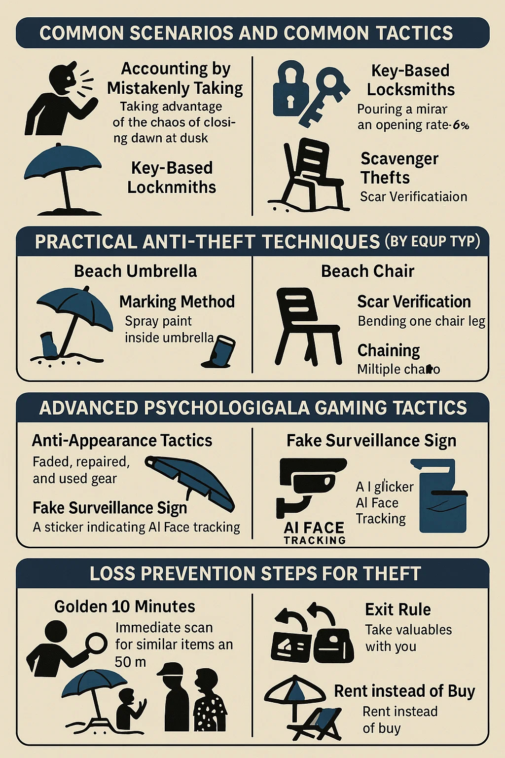 はい、盗難です ビーチパラソル 椅子はビーチフロントでよくある問題です。以下は、ビーチ管理者と定期訪問者の経験に基づいた段階的な対応戦略です。