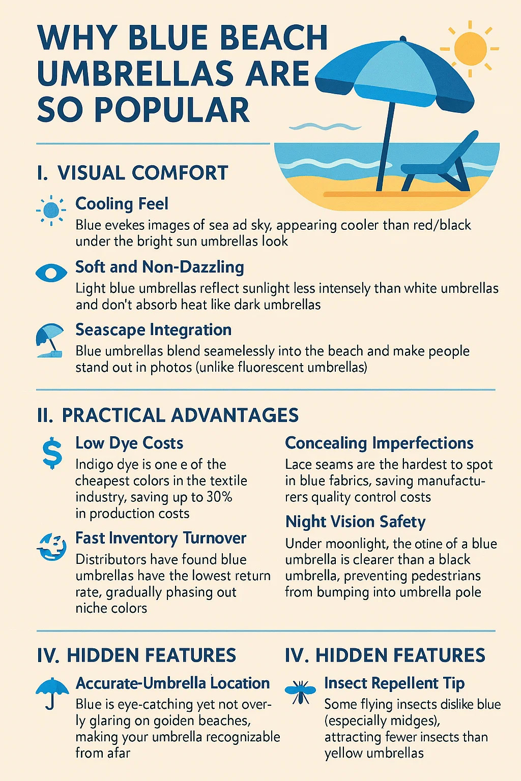 * **傘の正確な位置:** ブルーは目を引くものですが、金色のビーチでも眩しすぎず、遠くからでも傘を簡単に認識できます。